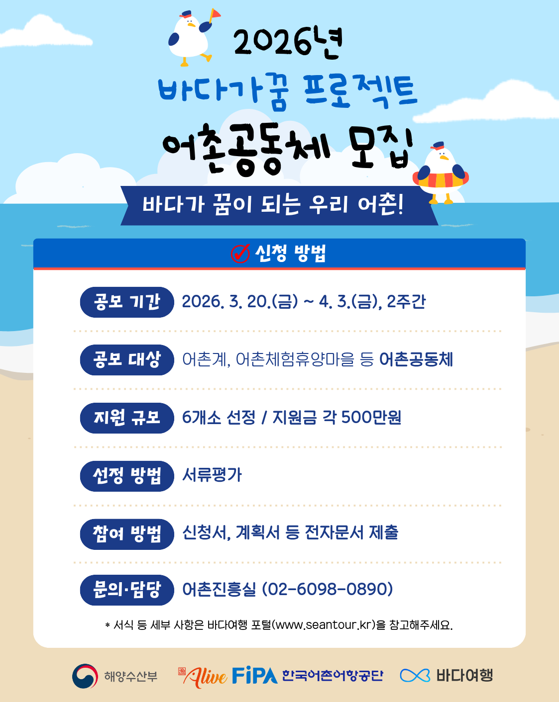 | 2026년 바다가꿈 프로젝트 어촌공동체 모집 안내(~4.3.(금)) | |||||